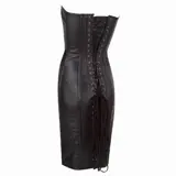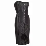 Echt leren corset jurk met stalen busk en stevige buigzame baleinen voor een strakke pasvorm, haakjessluiting aan de voorkant en stevige lange rijgveter aan de achterkant.