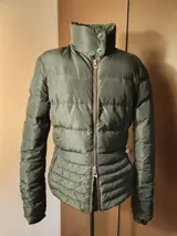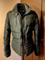 Gianni Versace vintage donkergroen (Khaki) dames bomberjack, in ganzendons en in perfecte staat.