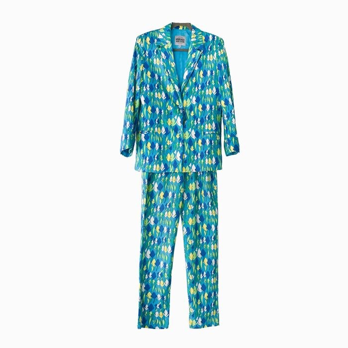 Versace Jeans Couture tweedelig bedrukt ensemble van broek met hoge taille en een blazer.