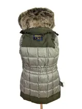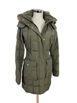 Blizzard WOOLRICH PARKA gewatteerd met ECHTE ganzenveren - Dames - met capuchon van echt afneembaar bont - nauwsluitende pasvorm - Woolrich-logo aan de buitenkant - in een superglamoureuze "green forest" groene kleur