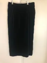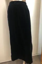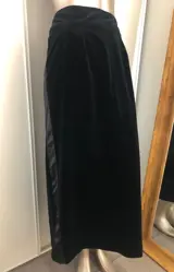 Lange zwarte fluwelen rok, satijnen randen aan elk uiteinde. Achter gleuf.