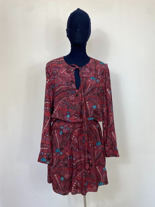 Jurk van zachte bordeauxrode viscose met bloemenpatroon