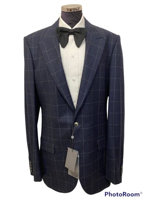 Blazer in essentiële stijl gemaakt door Alexander McQueen, op maat gemaakt voor zeer lange en slanke mannen, kasjmierstof, kleur blauw, 54 IT.