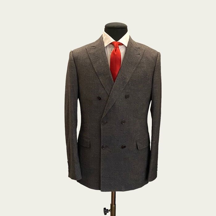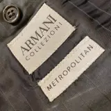 Prachtig nieuw Armani Collezioni jasje, gemaakt van wol en katoen mix grisaille stof, licht elastisch. Double-breasted jack met lege schouder met rolconstructie, gevoerd, dubbele rugsplit, paspelzakken met klep. Zacht aanvoelend, met spitse revers die de schouders accentueren.