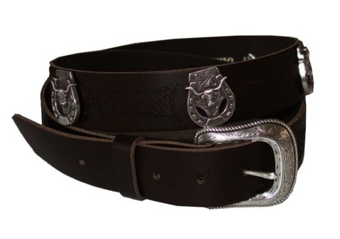 Biker riem " Skull met hoefijzer " BruinLeverbaar in de maten 105, 115, 125, 135 en 140 cm