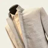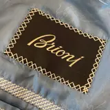Prachtig nieuw Brioni jack, made in Italy. Getailleerd colbert met twee knopen zichtbaar in de met de hand afgewerkte onderkraag, met echte knoopsgaten, parelmoeren knopen, paspelzakken met klep. Gevoerd en gestructureerd, met dubbele split aan de achterkant, gemaakt van zachte wol gemengd met zijde en linnen die het kledingstuk glans en zachtheid geven. De kleur is delicaat blauw, de binnenvoering draagt het bedrijfslogo.