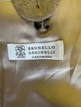 Zeer zachte jas van 100% kasjmier van Brunello Cucinelli. Geheel in naturel Beige Kasjmier. Licht en warm. Gebruikt maar absoluut als nieuw. Maniakaal onderhouden, het vertoont geen tekenen van slijtage. Alle originele Cucinelli details zoals knopen en stiksels zijn perfect bewaard gebleven. Het is een perfecte maat 52. Als je het aanraakt, begrijp je de echte waarde ervan, want kasjmier is erg zacht en warm, uiterst zeldzaam in deze staat. Spectaculair object gekocht toen Cucinelli de kledingstukken van dit type nog persoonlijk één voor één verzorgde. Het merk dat in de kraag is genaaid, maakt hem echt uniek