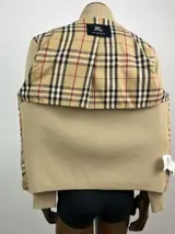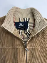 Burberry beige corduroy en wollen jas maat 5 (L) in perfecte staat (vrijwel nieuw) geweldige kwaliteit wol en katoenen binnenvoering. Met alle originele knopen en ritsen. De leren pull heeft slijtage.