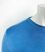 Blauwe ronde-halslijn trui met lange mouwen, rib manchetten, boord en halslijn in zijde/cashmere blend. Gemaakt in Italië.