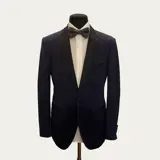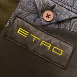 Prachtig Etro jasje made in Italy, gemaakt van zacht blauw stretch katoen, smoking snit. Gesloten door een enkele centrale knoop, ongestructureerd, het heeft een half paisley motief zijden voering. Achtersplit, paspelzakken, puntige revers. De revers en zakken zijn afgewerkt met een contrasterende glanzende zwarte stof, die ook alle knopen bedekt.