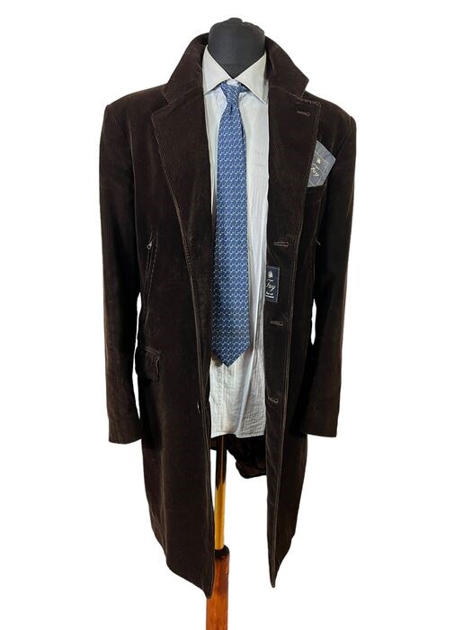 Tg. L - Aangesloten pasvorm ( Zie afmetingen ) - Donkerbruin (donkerbruin) - exclusieve ton-sur-ton gestreepte textuur - exclusieve stof met een fluweelachtig effect - moderne pasvorm met ultramodern extern Fay-logo - klassieke pasvorm - Mandarijnkraag - zachte achterkant