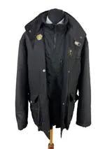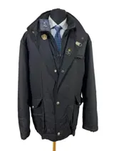 Fay Modern Line - Extern dubbel Fay-logo - Exclusieve technische stof - Volledige dubbele rij knopen - Fay metalen haak - omgekeerd - Mandarijnkraag - FAY-knopen - Zwarte kleur - Afsluitbare capuchon met ritssluiting - Verstelbare zijkanten met automatische knopen