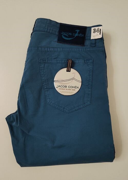 Jacob Cohen speciale editie. Model 620 comfort Handgemaakte broek. Capri blauwe kleur. Nieuw met kaartje maat 34