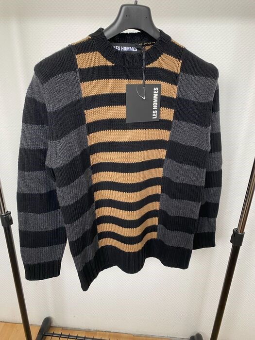 Prachtig gloednieuw met kaartjes, 100% authentieke Les Hommes herenmodetrui. Unieke trui van Les Hommes in zwart-witte kleur. Luxe Les Hommes Sweater-trui is gemaakt in Italië van wol en stof.