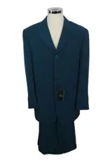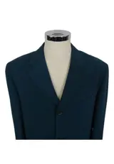 In dit kavel bieden wij u een prachtig pak, colbert met 3 knopen, klassieke revers, petrolgroene kleur, maat 52, stof: 100% polyester.