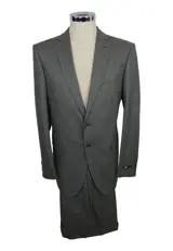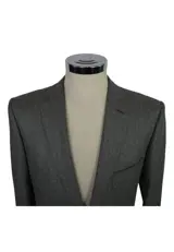 In dit kavel bieden wij u een mooi pak aan, colbert met 2 knopen, klassieke revers, grijze kleur, maat 52 hoogte R, stof: 93% wol - 7% kasjmier.
