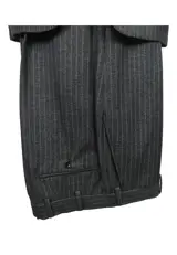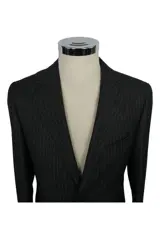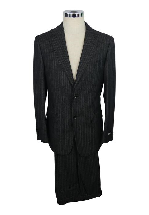 In dit kavel bieden wij u een prachtig pak, colbert met 2 knopen, klassieke revers, donkergrijze kleur, krijtstreeppatroon, maat 46 R hoogte, stof: 80% wol - 20% viscose.