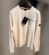 Traditionele Paul & Shark wollen trui, crème vanille kleur met borstzak en elleboogstukken