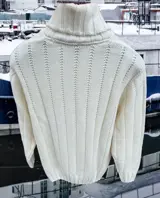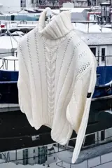 De exclusieve Fishermen-collectie 50% scheerwol en 50% acryl coltrui met iconische badge in maat XXL