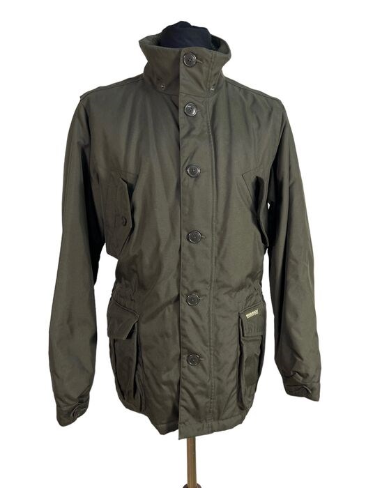 Een exclusieve Fabulous WOOLRICH-jas In ultraresistente Ramar-stof, wintervulling, met thermo-isolerend systeem - Woolrich-logo aan de buitenkant met ULTRA modern design - donsvulling in een fantastische legergroene kleur - meerdere zakken - dubbele ritssluiting en Woolrich-knopen