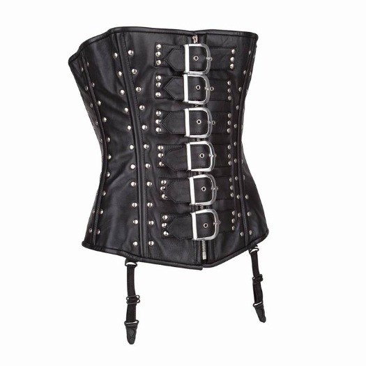 Echt leren corset met stalen busk en stevige buigzame baleinen voor een strakke pasvorm, ritsluiting en riempjes aan de voorkant en stevige lange rijgveter aan de achterkant,