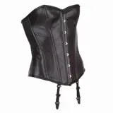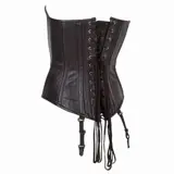 Echt leren corset met stalen busk en buigzame baleinen voor een strakke pasvorm, haakjessluiting aan de voorkant en stevige lange rijgveter aan de achterkant.