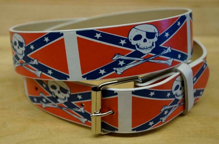 Gothic riem " Doodskoppen met rebel vlag " Rood, wit, blauw