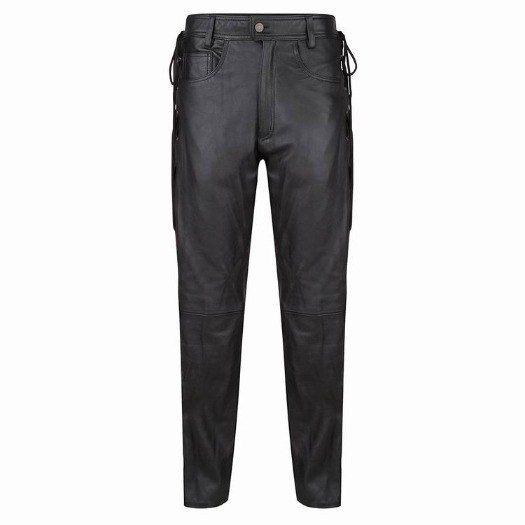 Mooie originele leren herenbroek met verstelbare koorden aan de zijkanten