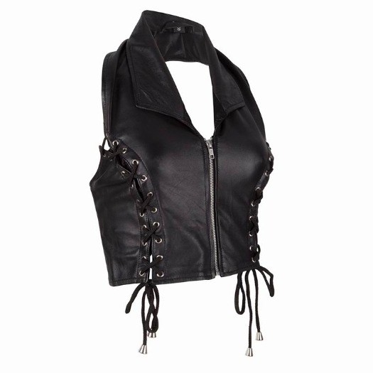 Strak leren topje van achteren en aan de zijkanten verstelbaar.