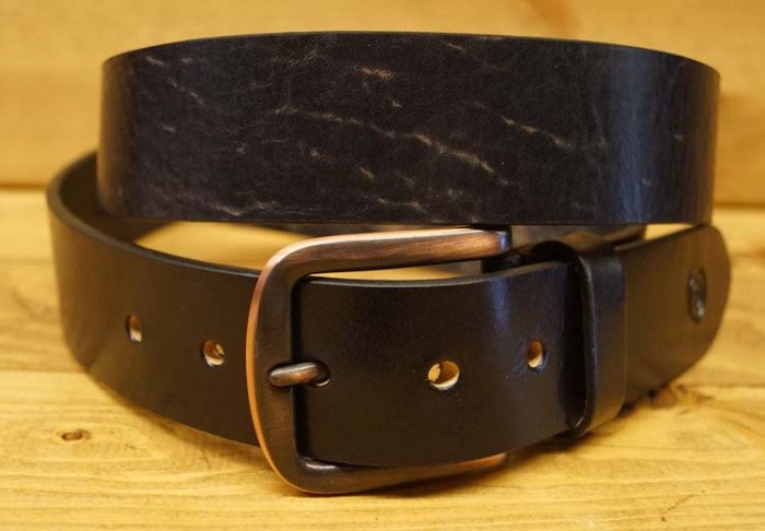Leren jeans riem " Zwart gevlamd " 4 cm breed