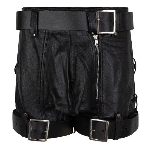 Leren shorts bondage model