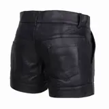 Leren heren jeans shorts in zacht schaapsleer.