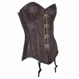 Donkerbruin steampunk echt leren corset met stevige buigzame baleinen voor een strakke pasvorm,