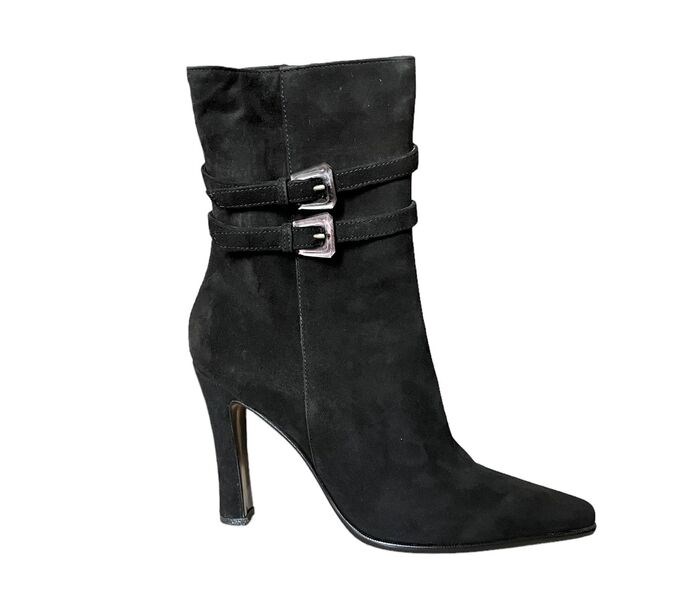 - In suède met 2 gespen aan de buitenkant van de schoen.