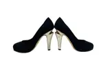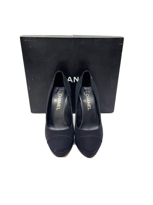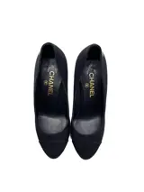 Chanel ongelooflijke catwalkschoen met gebeeldhouwde hak. Kenmerkende klassieke neus van Chanel schoenen met CC logo op de schoenen.