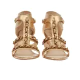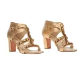 Metallic gouden leren kettingdetail sandalen met blokhak en blokhak