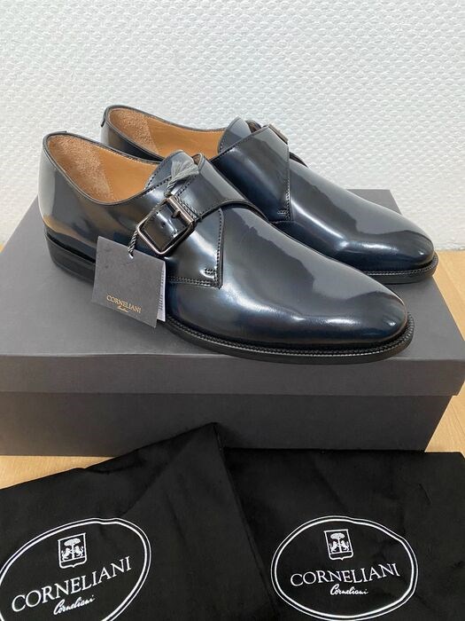 Prachtig gloednieuw met originele labels, 100% authentieke Corneliani-schoenen. Luxe Corneliani schoenen worden in Italië gemaakt van lakleer. Unieke Corneliani Buckle schoenen in blauwe kleur.