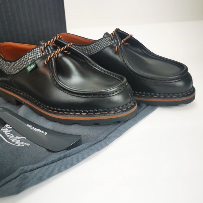 Met leer gevoerd model, origineel Noors stiksel op een rubberen zool.