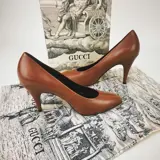 Metalen plaat met Gucci-letters op de zool