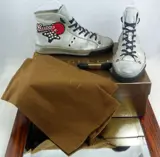 Limited edition Gucci Red dot & Stud sneakers, basketbalstijl in leer met rubberen zool in de exclusieve zilverkleur.
