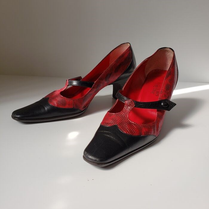 Jean Paul Gaultier Python Embossed Strap Heel Pumps Rood Zwart 4 [Dames]