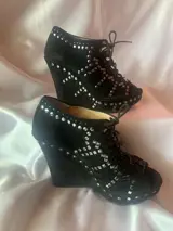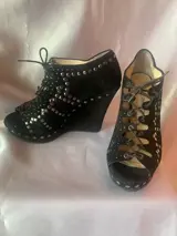 Bijzondere Jmmy Choo-schoenen in zwart suède met studs in verschillende vormen en maten die ze modern en flitsend maken.