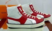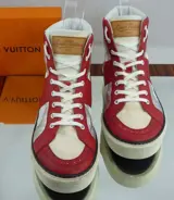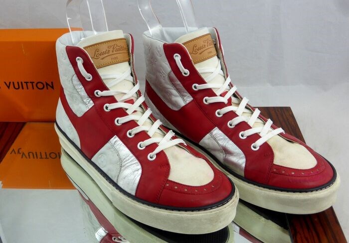 Super zeldzame tri-color edition sneakers, basketbalstijl in leer in de exclusieve monogram witte, rode en zilveren kleur.