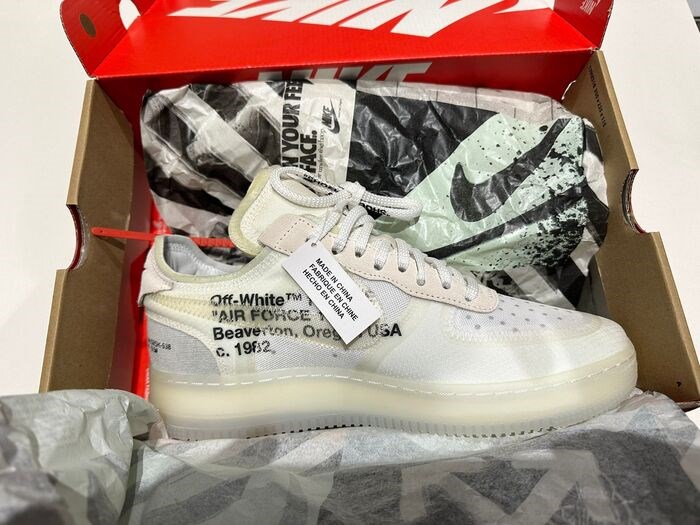 Nike Air Force 1 X Off White "The Ten" schoenen, nieuw met doos, ongedragen, gekocht bij Antonioli Milano, maat 43.