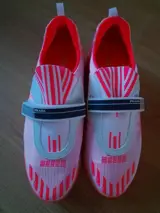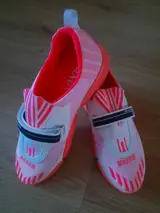 EU39.5. En de kleur is koraal -Wit zie foto van de doos en is voorzien van een klittenbandsluiting zie foto's.