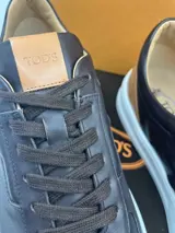 leer, merklogo, tweekleurig patroon, leren voering, veters, ronde neus, platte, rubberen kiezelzool, bevat niet uit textiel bestaande delen van dierlijke oorsprong, Tod's lage sneakers in donkerbruin leer. Lateraal monogram. Strikken. Logo op de tong. Rubberen zool van 40 mm.