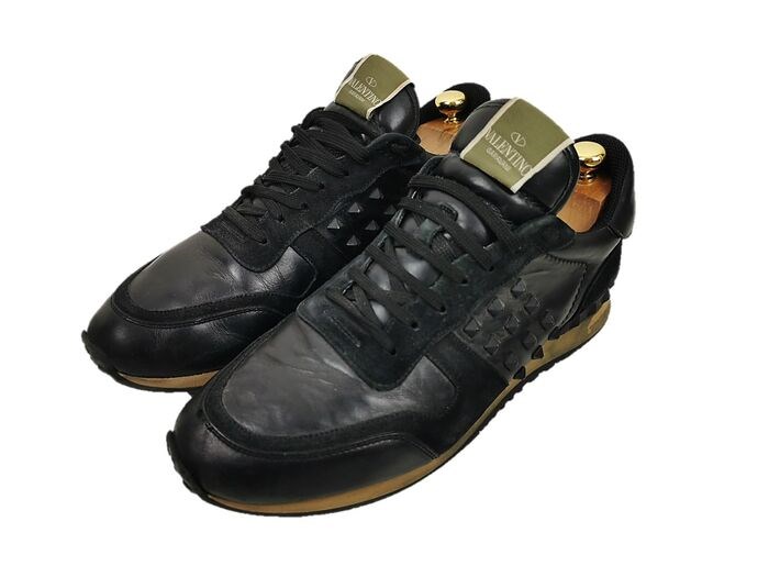 Met de bekende studs van Valentino op de sneakers.