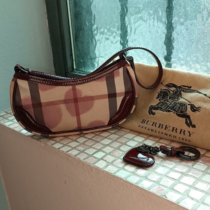Burberry Rare London Heart Pochette, zelden gebruikt, in uitstekende staat. Het gecoate canvas aan de buitenkant is schoon en mooi, de binnenkant is schoon. De tas wordt geleverd met een hartvormige sleutelhanger. Originele tas met originele dustbag.