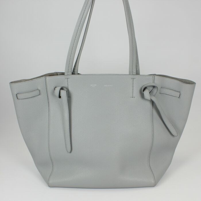 Gemaakt om de 'Cabas Phantom' te vervangen, heeft deze Phantom Tie-draagtas een ceintuur met riem aan de zijkanten met strikbandjes die aan de voorkant van de tas hangen of die in een strik kunnen worden vastgemaakt. Deze tas is gemaakt van prachtig grijs getrommeld kalfsleer en herinnert ons eraan dat Celine dol is op hun hoogwaardige leersoorten. Binnenin zit een zakje met 2 vakjes. We houden van het eenvoudige en minimalistische karakter van deze tijdloze draagtas.
