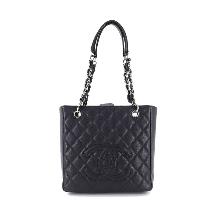 Titel:CHANEL Matelasse PST Chain Tote Bag Caviar Skin Leer Zwart A20994 90180047